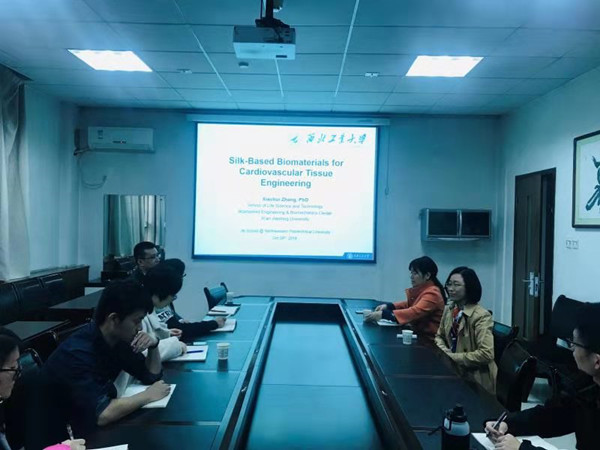 应威廉希尔官网卢婷利教授、崔宁讲师邀请,西安交通老员工命科学与技术学院张晓慧教授于10月30日上午9:00,在威廉希尔官网102会议室为学院师生作了题为“Silk-Based Biomaterials for Cardiovascular Tissue Engineering”的学术报告。报告由卢婷利教授主持,学院部分青年教师、生物材料与药物技术课题组的全体员工,参加并聆听了报告。
