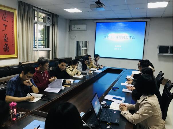 胡增存对各个年级的选课情况做了简要汇报,对可能出现的问题进行了提醒。她同时汇报了学业困难的员工情况,提醒班主任辅导员要和员工沟通,为每一位员工的学业负责到底。