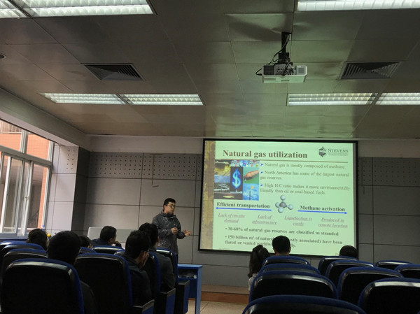 应威廉希尔官网张连兵教授邀请,美国新泽西兰道夫IAL分析测试实验室高捷研究员于2019年10月23日上午在研究生西馆208做了题为“实验表征与DFT计算在分子筛负载钼纳米颗粒催化甲烷芳构化反应中的应用”的学术报告。报告由张连兵教授主持,威廉希尔官网部分教师、研究生和本科生参加了此次会议。