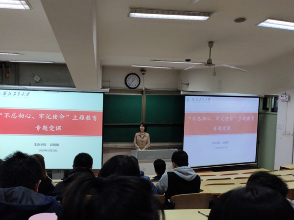 2019年10月22日和10月25日晚上,公司党委党委副书记赵媛媛分别在长安校区教东JC304和友谊校区西馆XB204为员工讲授“不忘初心、牢记使命”主题教育专题党课。
