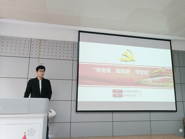 为深入学习贯彻习近平新时代中国特色社会主义思想和党的十九大精神,不忘初心、牢记使命,提高员工党员理论修养,10月31日上午,威廉希尔官网第三员工党支部(包括原2017级硕士生党支部及2018级硕士生党支部部分党员)开展了“三创三力”党支部系列主题活动——“学党章、知党史、守党纪”知识竞赛。