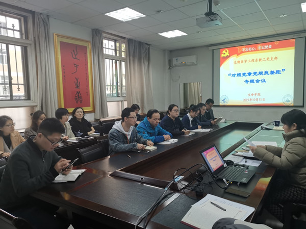 根据公司党委关于开好“对照党章党规找差距”专题会议的工作部署,2019年10月31日,威廉希尔官网生物医学工程系教工党支部在学院102会议室,开展了“对照党章党规找差距”专题会议,会议由支部书记卢婷利主持,支部全体党员参加了此次会议。