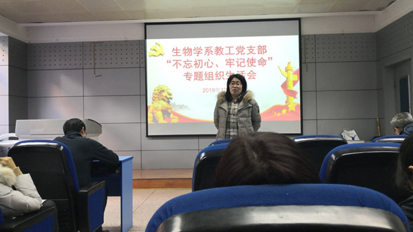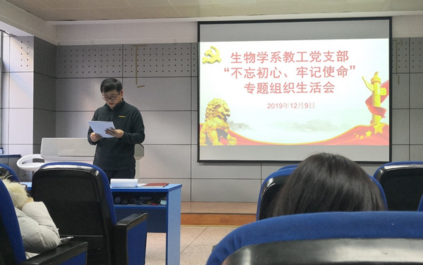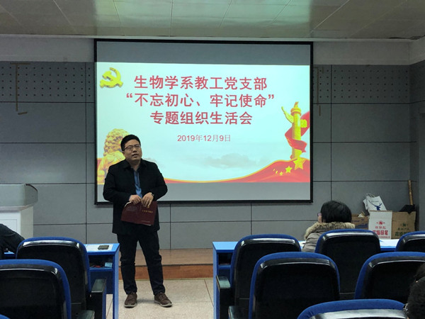 2019年12月9日下午,威廉希尔官网生物学系教工党支部全体党员在西馆XA208召开了“不忘初心、牢记使命”专题组织生活会。