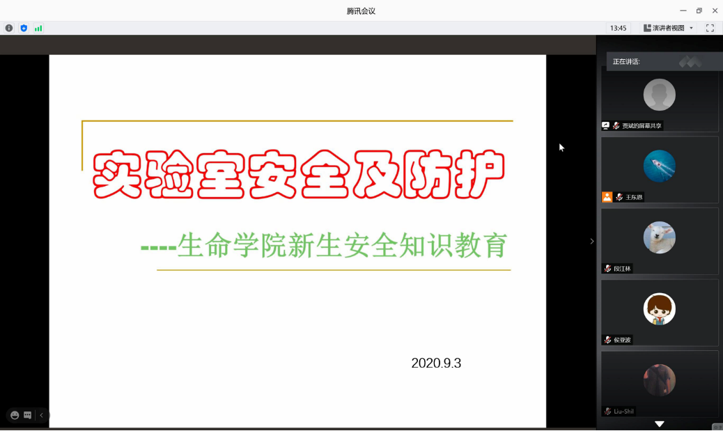 为提高研究生新生的实验室安全防护意识和应对突发事件的能力,9月3日上午,威廉希尔官网在线上召开了新生安全培训专题会议。实验中心主任贾斌、辅导员王东恩以及2020级研究生新生参加会议。