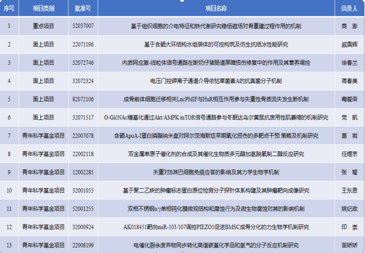 近日,国家自然科学基金委员会公布了2020年度国家自然科学基金集中受理期申请项目的评审结果。公司共有13个项目获得资助。其中,重点项目1项,面上项目5项,青年科学基金项目7项,较去年立项总数增长62.5%,资助经费增长235%,取得了跨越式突破。