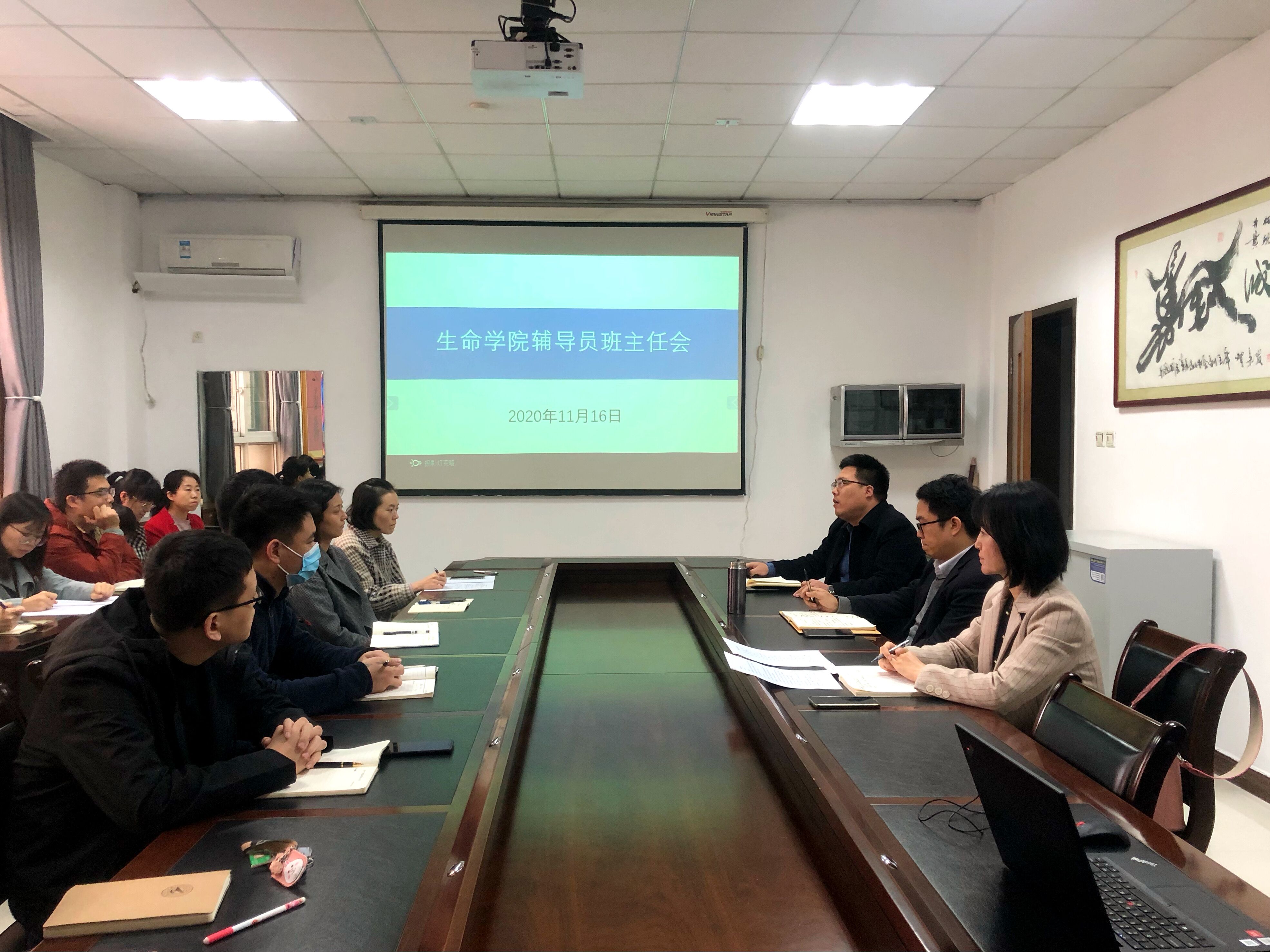 赵媛媛汇报了前期在党建思政、学风、创新创业、队伍建设等方面的工作和成效,通报了近期学校相关通知要求,强调员工安全教育的弦不能松,对后续辅导员班主任工作进行了安排部署。