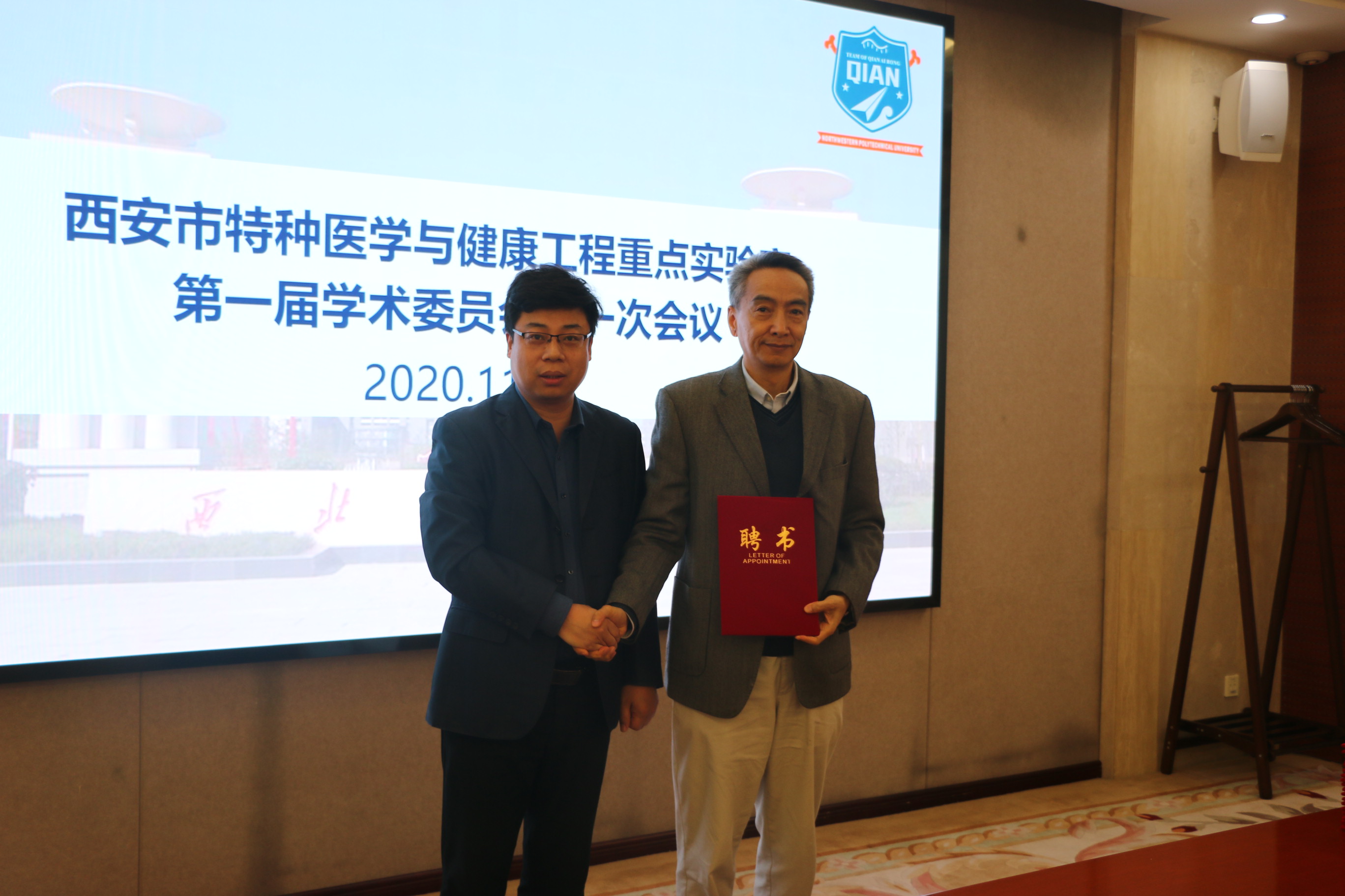 重点实验室学术委员会聘任仪式由尹大川主持,王少华出席会议并致辞,代表学校向各位委员表示热烈欢迎,希望通过各位委员能为重点实验室的发展建言献策,促进实验室快速发展。于辉宣读了学校《关于成立西安市重点实验室学术委员会的通知》文件,王少华为各位委员颁发了聘书。