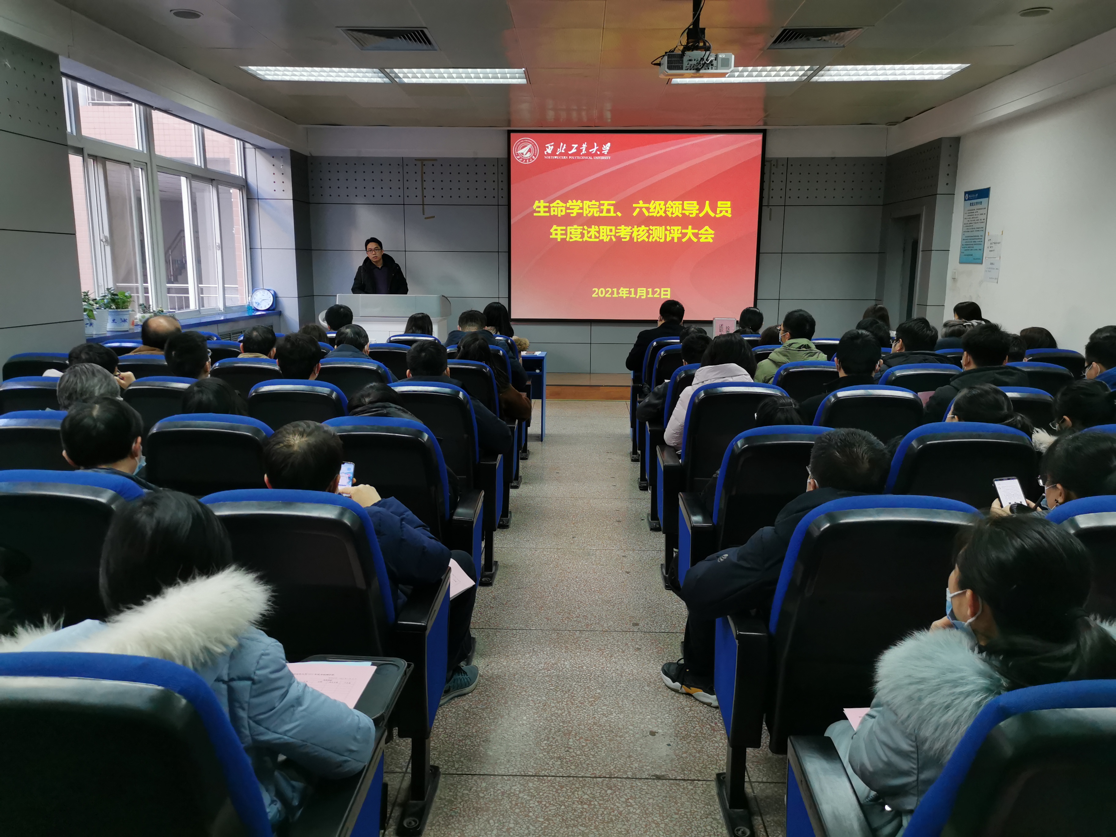 1月12日,威廉希尔官网召开五、六级领导人员年度考核述职测评大会暨教学委员会第二届委员换届选举大会,全体教职工参加了会议,会议由党委副书记于辉主持。