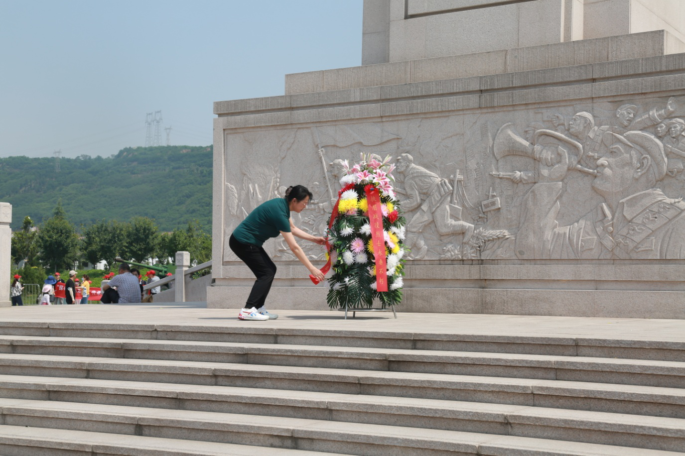 在烈士纪念碑前,张静向烈士纪念碑敬献花篮。全体党员集体默哀、三鞠躬,表达对革命先烈的缅怀之情。