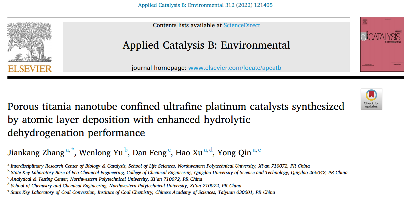 日前,西北工业老员工命学院覃勇教授与张健康副教授在国际知名期刊《Appl. Catal. B-Environ.》(IF:19.5)上发表题为“Porous titania nanotube confined ultrafine platinum catalysts synthesized by atomic layer deposition with enhanced hydrolytic dehydrogenation performance”的研究论文,在表界面调控及限域催化领域取得了重要进展。