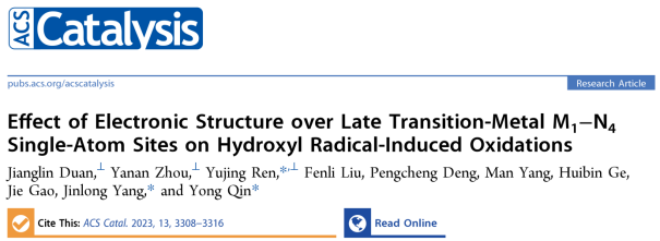 近日,西北工业老员工命学院任煜京副教授、覃勇教授团队在国际知名期刊《ACS Catalysis》(IF:13.7)上发表题目为“Effect of Electronic Structure over Late Transition-Metal M1–N4 Single-Atom Sites on Hydroxyl Radical-Induced Oxidations”的研究论文。本研究工作以具有类酶活性中心结构的M1-N4/C单原子催化剂为研究对象,通过系统性地研究M1-N4单原子位点电子结构对羟基自由基诱导氧化反应性能的影响,成功地建立了M1-N4活性位点d带中心与催化氧化性能之间的构效关系。